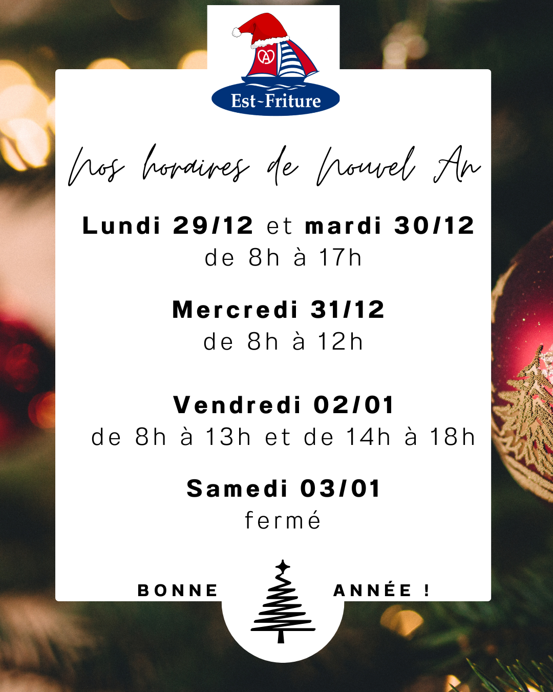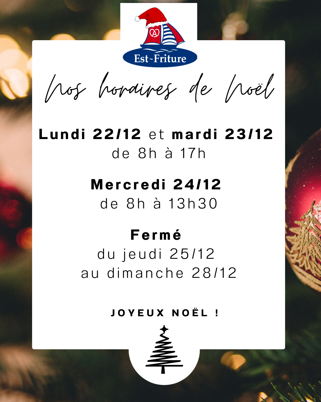 NOS HORAIRES POUR LES FETES DE FIN D'ANNEE
