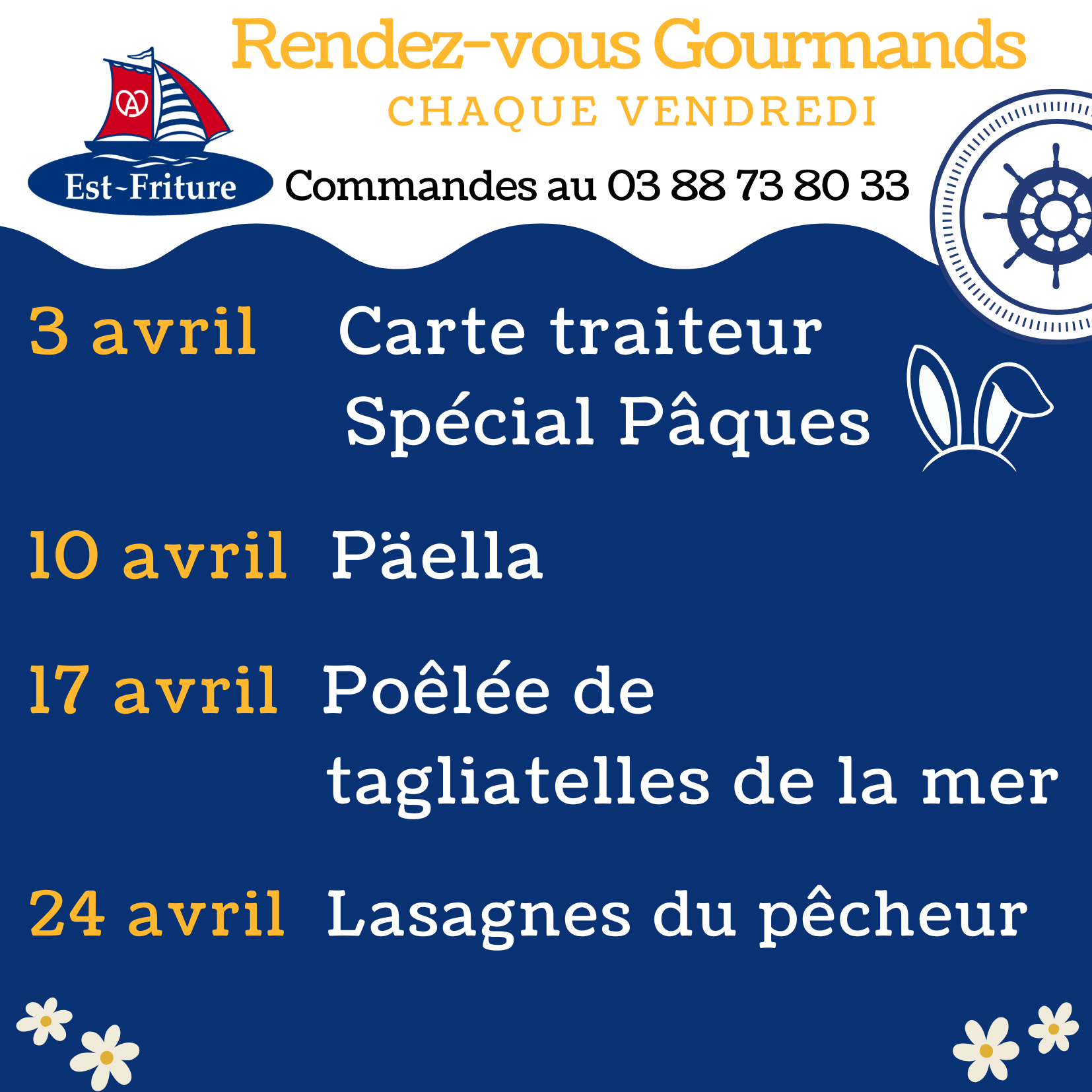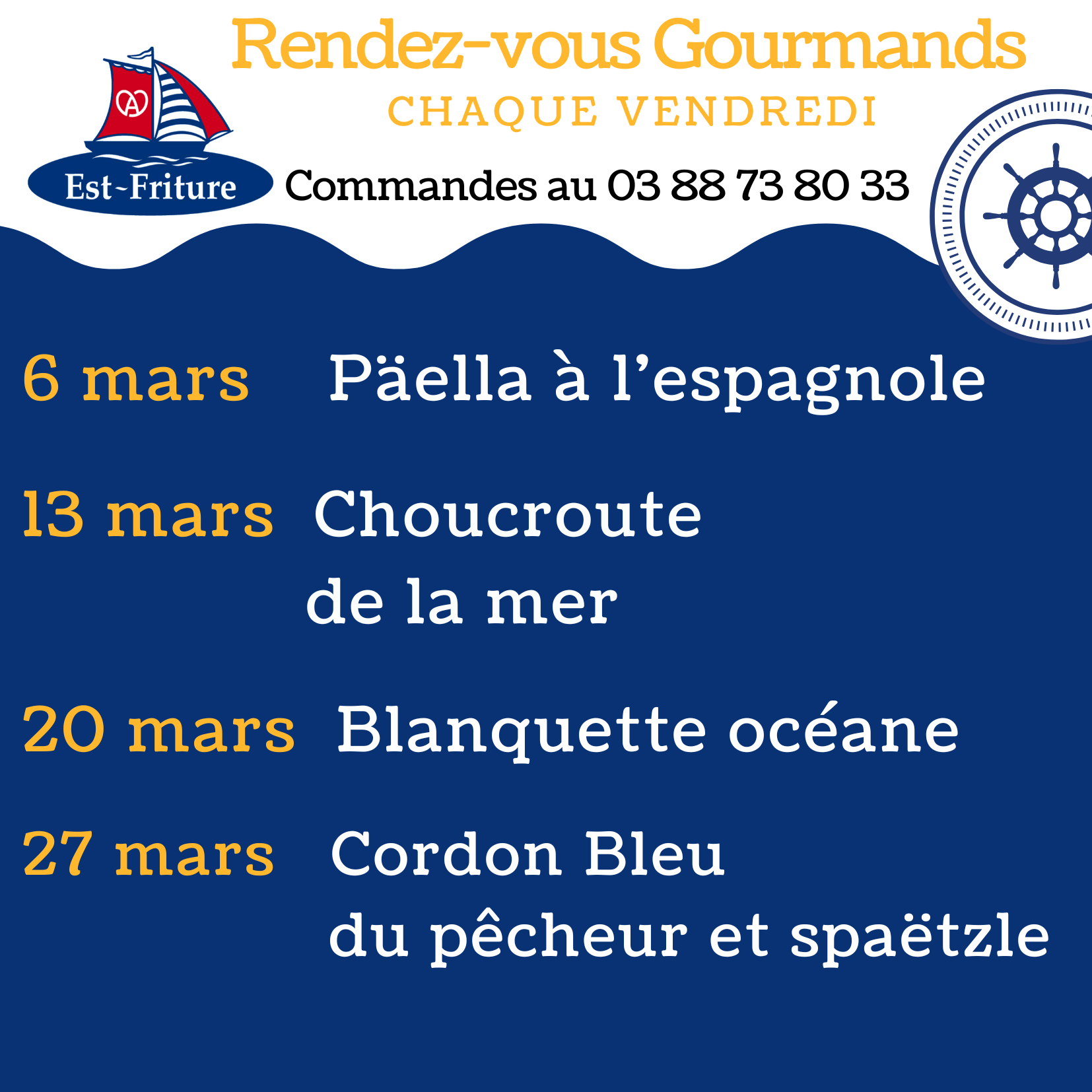 Sur commande : Jetez l’ancre au 03 88 73 80 33